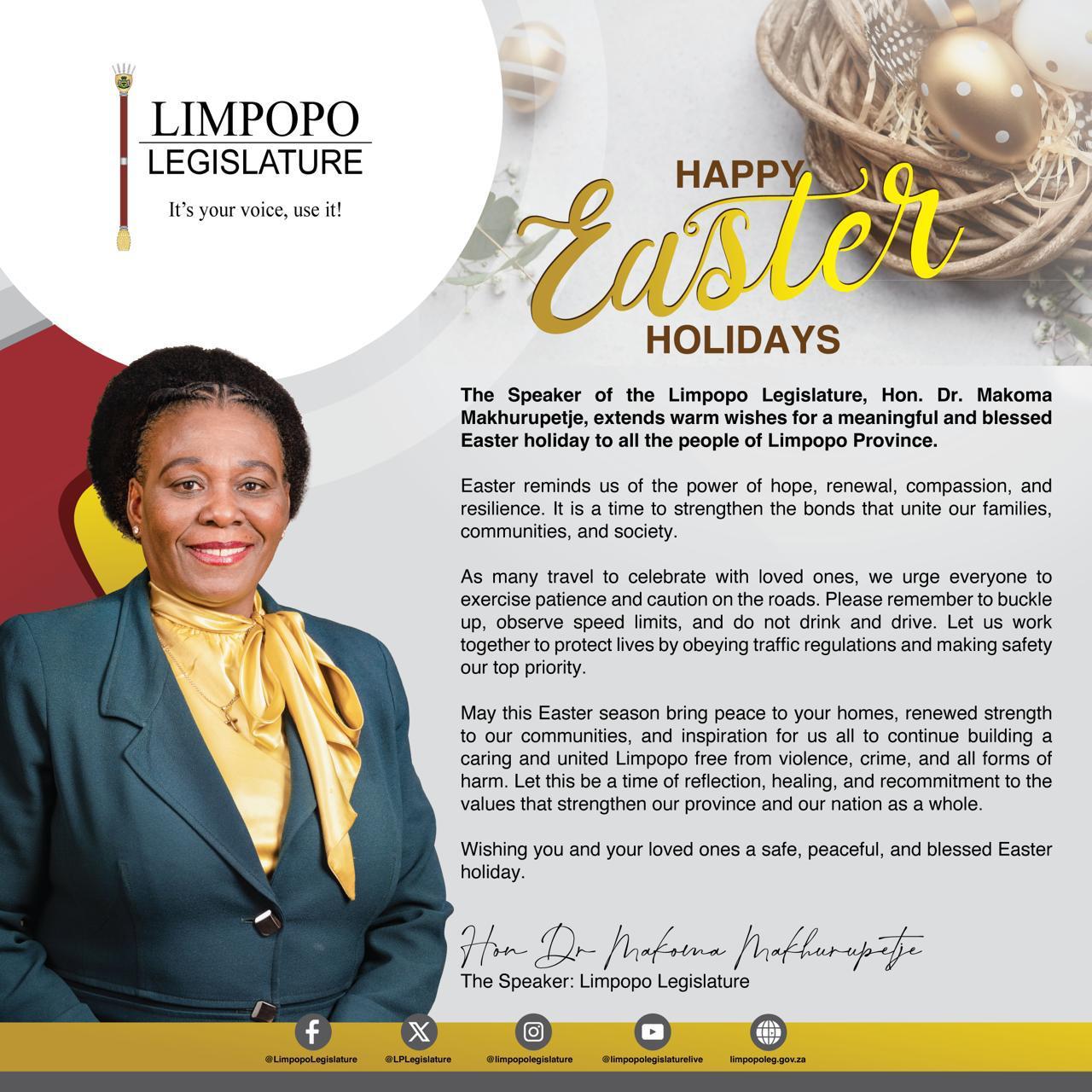 A capable and representative legislature that aspires to unite and improve the lives of the people of Limpopo.